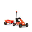 Avec le kart EXIT Foxy Fire et sa remorque, tu peux rouler à toute vitesse en négociant des virages serrés. Le kart dispose d'un frein à rétropédalage et peut avancer ou reculer. Les pneus massifs en EVA du kart EXIT Foxy Fire avec remorque sont increvables et l'essieu robuste et flexible garantit que les deux roues avant du kart restent toujours en contact avec le sol, même lorsque celui-ci est accidenté.